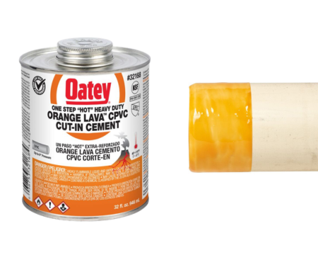 | Oatey® Orange Lava CPVC Cut-In Cement | Time-sensitive cut-in/repair work; commercial cold/hot water systems | Designed for quick repairs / limited downtime | Primer not required per one-step usage where local codes permit |