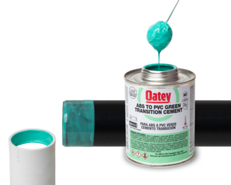 | Oatey® ABS To PVC Transition Green Cement | Non-pressure ABS↔PVC transition joints (up to 6") | Formulated specifically for ABS-to-PVC transitions | Do not use primer |